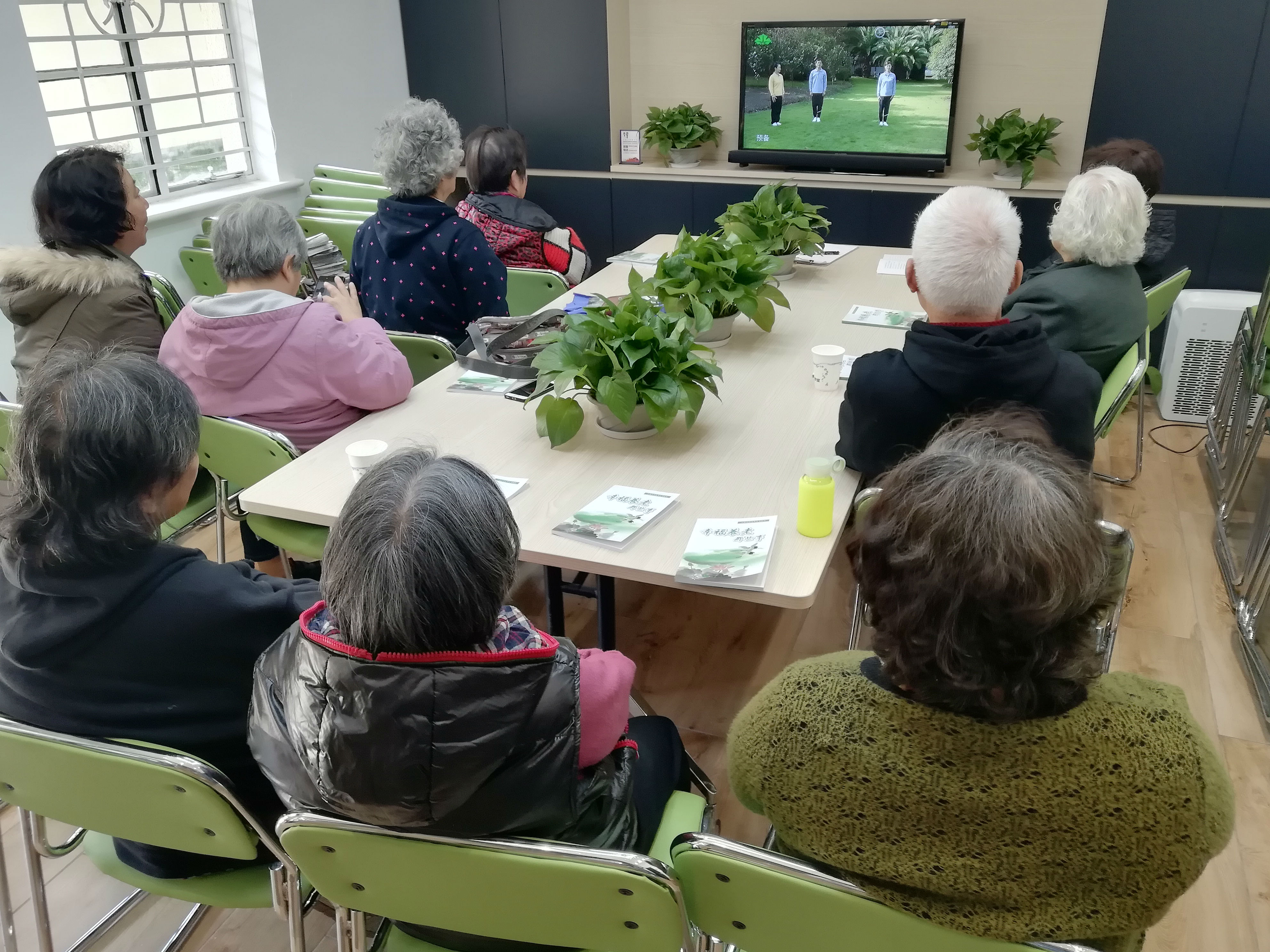 今天是开学的第一天,远程教育辅导员和学员们都兴高采烈早早地来到了收视点迎接新学期。这个期的教科书内容编得真好!家庭养花、美食、银龄范儿、生命教育、悦动保健操,内容实用丰冨多彩,是那么贴近居民生活,让居民晚年老有所学、老有所为、老有所乐。居民们说:"感恩我们的党、感恩我们的政府、感恩我们湖南街道社区学校"!