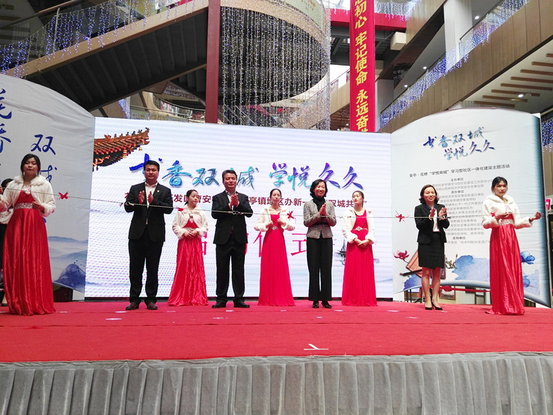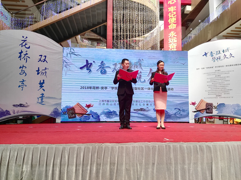 4月25日上午,2018年花桥·安亭“学悦双城”学习型社区跨区域一体化建设系列主题活动之一“书香双城·学悦久久”读书月,暨安亭镇第八届党员学习月和花桥经济开发区第十一届阅读节,在江苏昆山花桥经济开发区曹安街道“兆丰99新生活广场”正式启动。