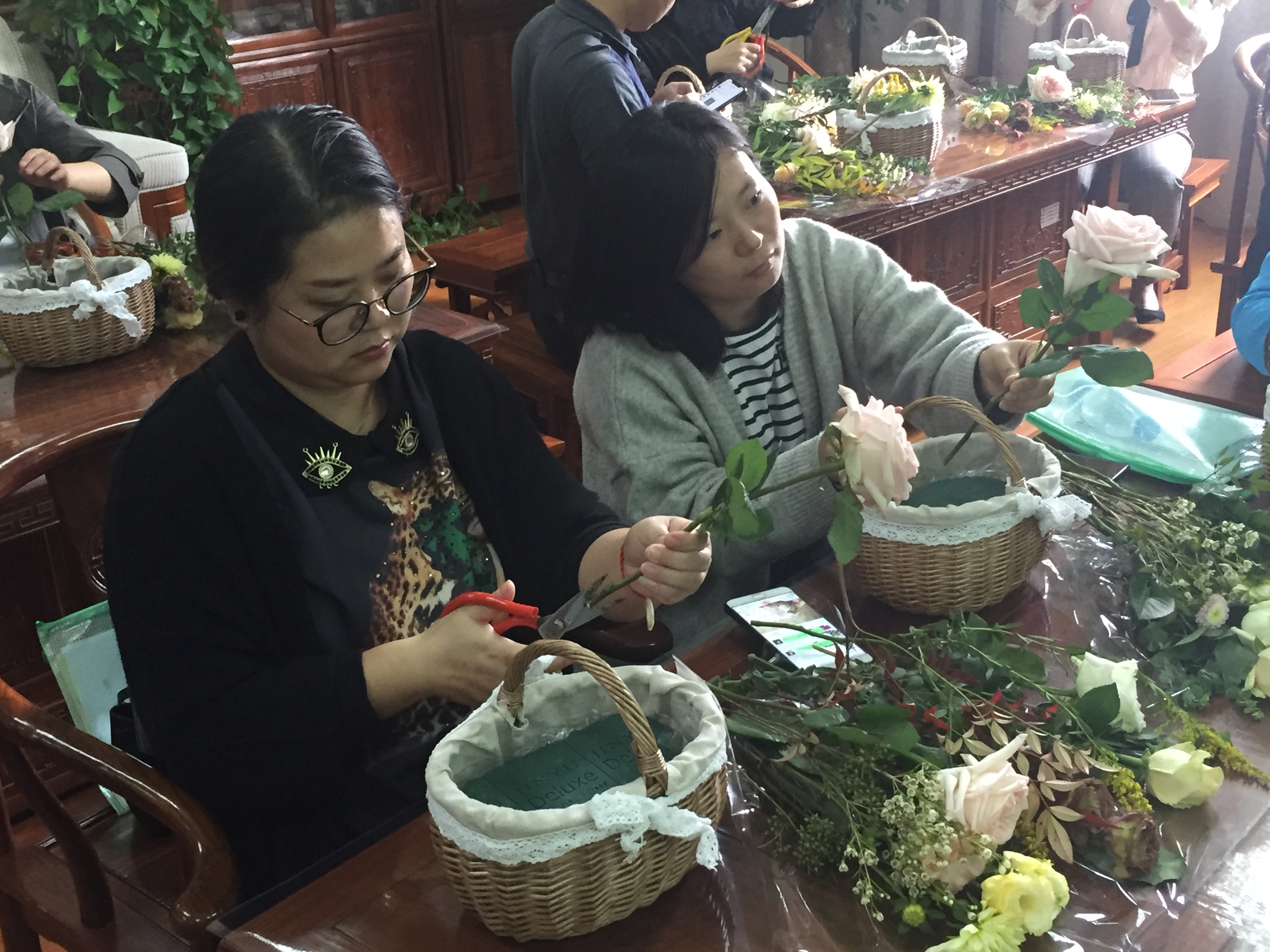 会议之后,学校特为各社教干部和团队负责人准备了体验活动——插花。花艺师张老师先为大家介绍了插花的种类、原则和技巧,让大家走进了花草的世界,感受了插花的艺术美。在实际操作环节中,大家边听张老师讲课,边对手上的花进行修剪和搭配,跟着老师的节奏,一步一步地创作着自己的插花作品。一丝不苟的张老师还一一为大家指导与完善作品。在悠然的花香浸染间,我们享受着忙碌之余的那一份闲适与自然,提升生活品质的同时,也为我们的生活增添了美感。