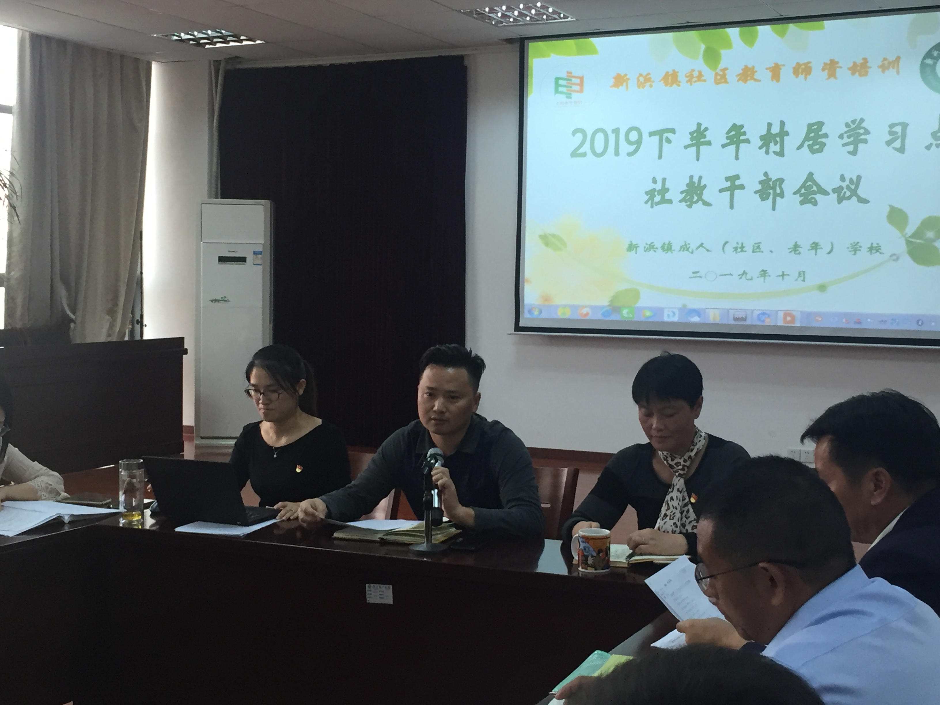 为了进一步规范学习点建设工作,加强学校与各村居、敬老院学习点的联系,新浜镇成人(社区、老年)学校于10月18日下午召开了2019下半年村居学习点社教干部会议。新浜成校全体教师和13个村居学习点和敬老院的社教干部、团队负责人参与了本次会议。会议由副校长王一峰主持。