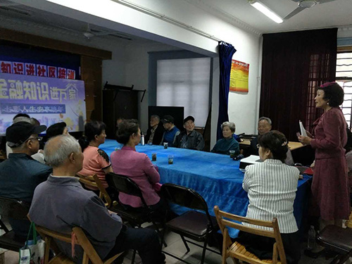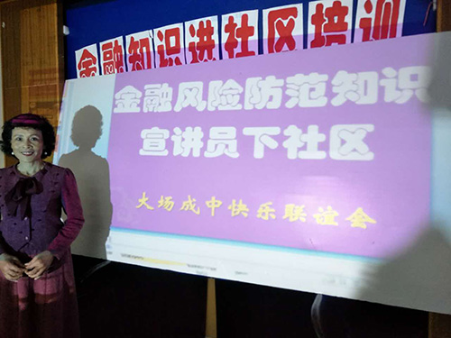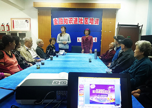 根据我们快乐联谊会团队骨干班子,学习贯彻“十三五老年教育规划”会议的计划安排,2017年5月4日由虞惠君组成的金融风险防范知识进社区宣讲小分队,首先到大华二村一居委,进行金融知识风险防范知识宣讲。开课前半个多小时,杨家凤,汤三媛等几位宣讲小分队负责老师就到现场,摆好电脑、投影仪、屏幕。做好上课前的各项准备工作,居委会领导非常支持,早就布置好会场,居民准时前来参加。大家对这次金融知识讲座兴趣盎然,全神贯注的听了虞惠君老师讲课,看老师做的PPT图像,很有直观性。