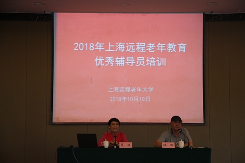 10月10日,上海远程老年大学举行2018年上海远程老年教育优秀辅导员培训会议,特邀上海市教育委员会终身教育处副处长夏瑛、上海学习型社会建设服务指导中心副主任姚爱芳到会,分别以“上海老年教育工作的亮点和突破”“远程收视,精心辅导”为题作专题培训。会议由上海老年大学副校长陆晔主持。上海开放大学老年教育学院副院长钱滨,上海教育电视台节目制作部主任颉宁,上海远程老年大学办公室主任葛咏出席会议。