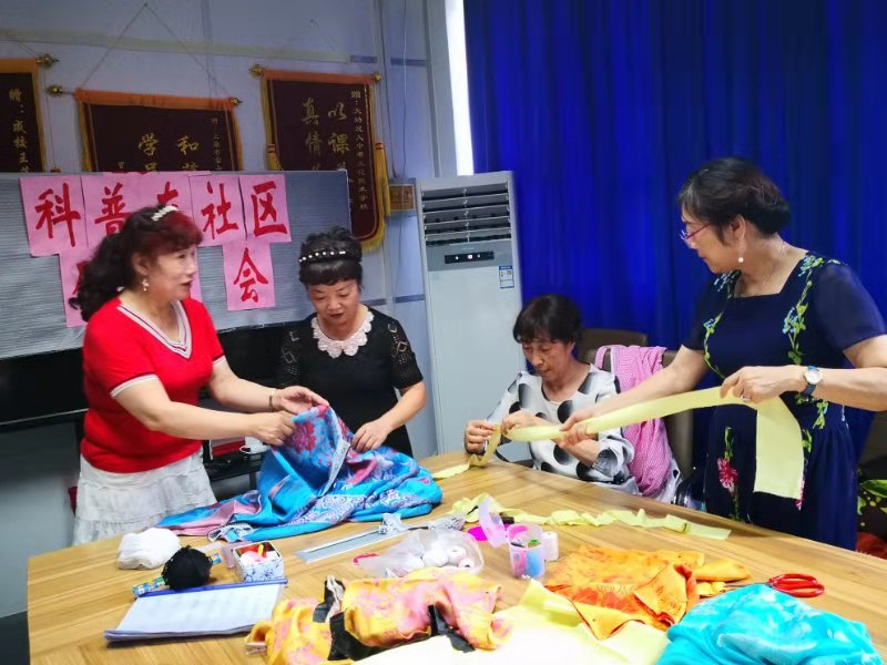 “微课堂”以后,选手们信心百倍,干劲十足,冒着酷热,顶着骄阳,继续坚持在最短的时间内,拿出参赛作品。以“工匠”为首的“低碳行动——创意小车比拼”参赛小组,付妙德,姜琳琳,郭亨如三位能手,是参加科普项目竞赛四年的最佳拍档,多次获得一等奖,二等奖。这次她们创作的小车,第一次的样品,不符合能要求。尚有差距,为了完美参赛作品,推翻了第一次的作品,有志竟成,重新设计,更换材料,精心测算,反复试车,抓紧制作,在研讨会上,她们拿出了符合比赛要求,控制自如的小车模型,得到了沈主任的赞许。以汤三媛老师为首组建的“焕然一新——环保服饰小剧场”小组,也是一支成熟的参赛队伍,有着丰富的参赛经验,在2017年参加的“太空服装现场秀”项目竞赛,设计,制作的航天服和梦幻般的表演获得了很高的评价。今年汤三媛老师,按照比赛要求,拿出家中的废弃物,带领一批能工巧匠:苑雅萍,周凤英,潘之倩,高家瑛,狄爱莲等老师,根据团队的特点,制作出可以结合文艺演出的服装,既利用家中的废弃物,绿色环保,变废为宝,还可以为团队节约了制作演出服的开支,显示了科普进社区项目的实际经济价值,众志成城,群策群力把比赛项目从舞台上,搬到日常生活中,为丰富老年人的文化生活,提供了新的途径。通过这次科普进社区活动,我们将在团队发动大家,把压仓几十年,今世不再使用的废弃物品,制作成我们的表演服(时装),争取在年终学校的汇报演出中,全部用废弃物品,制作的演出服,参加演出,不仅节约演出成本,更加能够展示绿色环保的深层次的价值。
