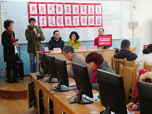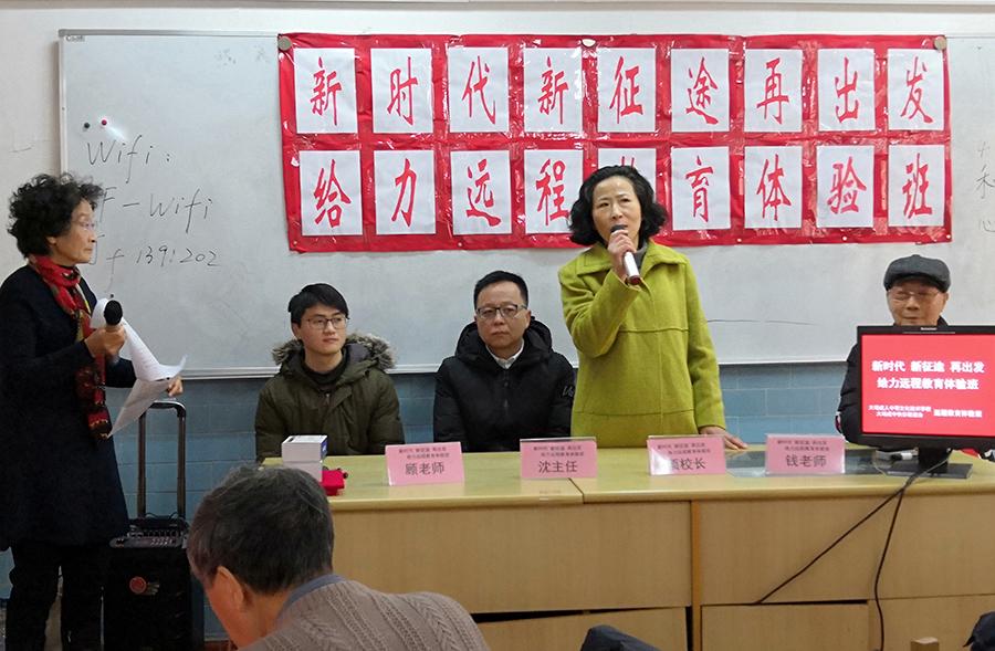 大场成中学校须校长在百忙中作的简短发言,鼓舞了大家增强了信心和决心。她肯定了上学期“示范班”的成绩,也对扩招建立的体验班寄予更高的厚望,要求在新时代,不断创新,不断进步的基础上,在新征途上,为社区教育做出更多贡献。社区教育办公室沈純刚主任的讲话,为“体验班”制定的新时代学习计划和目标,走出了一条创新之路,为远程教育树立可复制的样板,为信息化教育积累经验,为学校建立的“公开课”基地,同时也为老年教育培育和配送志愿者老师,储备足够力量,加深了底气。