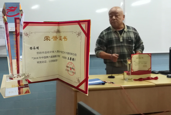 这次苑会长不仅仅捧回了连续七年,由第一任支会长翁建新老师夺得的“优秀支会”荣誉,还带回了苑会长荣获上海摄影老年分会大华支会“优秀组织者”称号的奖状。蒋建一老师,张卫芳老师二人分别获得上海摄影老年分会“个人先进”称号,在我们摄影支会十五位参加“记录美好时代影展”的活动,有三名作者获奖,他们是:王福明(优秀奖),顾可慰(入围奖)张卫芳(入围奖)。2018年下半年以来已经有王福明老师荣获第七届“中国数码摄影协会”金鸡奖。杨永明老师获得“2018中国第六届摄影大赛”三等奖。还有顾可慰等老师取得过摄影大奖。