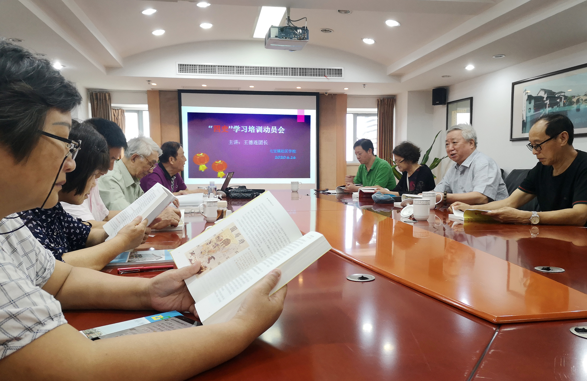 6月16日下午,七宝镇社区学校召开宣讲团阶段性教研活动。主要内容为统筹落实“四史”学习、《宣讲集锦2》等下阶段的工作布置与讨论。会议由社区学校卢明华老师主持,参加者有杨兆兴、凌熙康、张跃亭等10位老师。