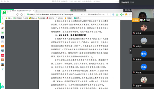 尽管线下讲座、活动、课程都受到疫情影响而推迟,但静安社区教育人都在积极行动。会上,社教部主任杨玉明老师带领大家一起学习了“2020年上海市终身教育工作要点”、“2020年上海市老年教育工作要点”、“2020年静安区学习型城区建设与终身教育工作要点”等相关文件。通过文件的共同学习,社区院校的老师们进一步统一了认识、明确了年度工作目标和任务。社教部的老师们也将近期重点工作一一做了会议交流,上下互动,取得了良好的会议效果。社教部的顾倬麒老师也向大家示范了如何在静安学习网和上海老年慕课平台在线参加课程学习和考核。希望通过此次示范,进一步提升在线学习方式的覆盖面和利用率。