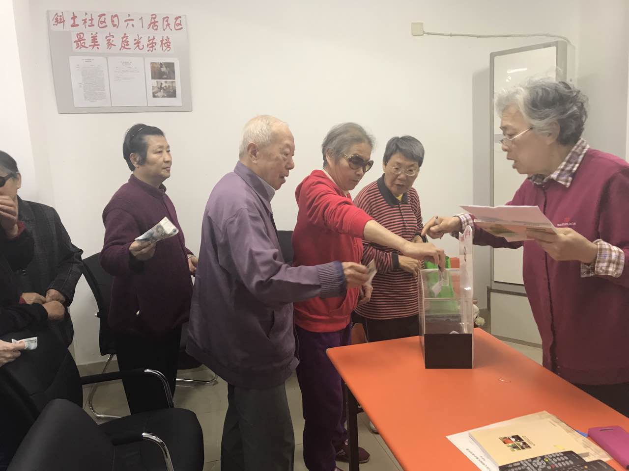今年是第七十界世界红十字日,每年的世界红十字募捐日都少不了日六(1)老年大学学员们的捐款,今年也不例外。2017年5月2日上午日六(1)居委远程老年大学的学员们在班长、班主任的带领下,自发地为红十字日募捐。