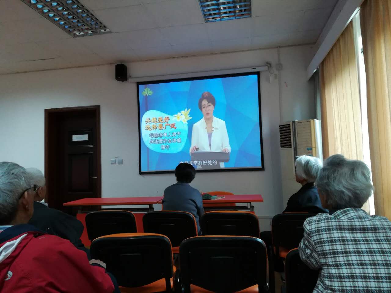 今天远程老年大学在东方巴黎的C103室又开讲了。今天的内容讲的是老年人怎样调适自己身心的兴趣和爱好。
