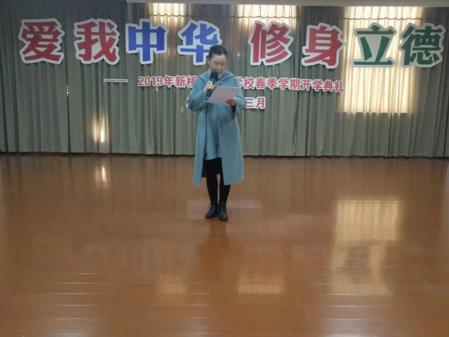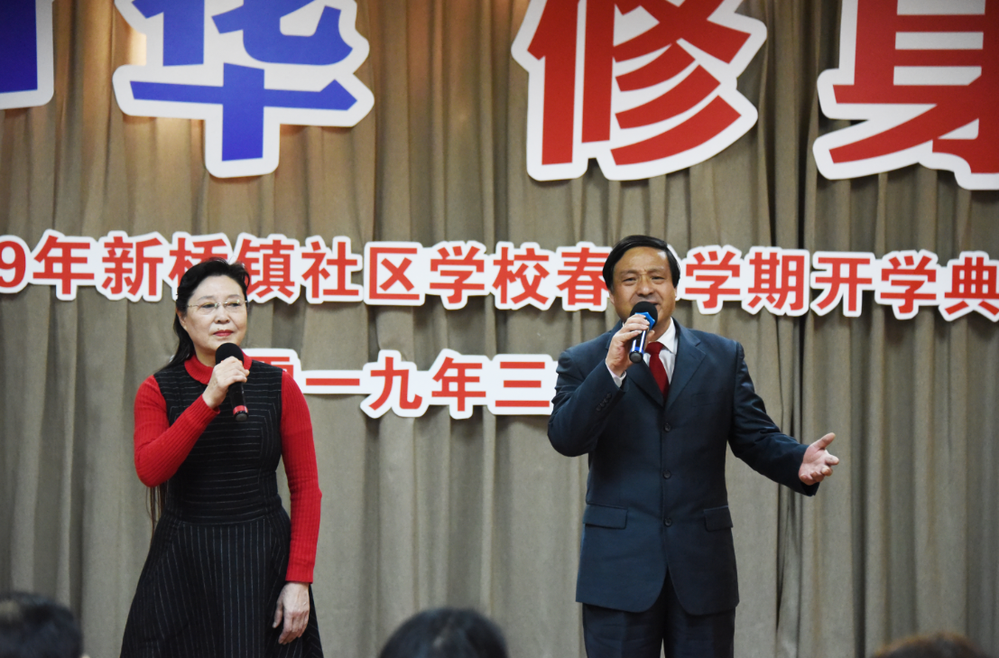 春暖花开又一春,喜迎建国70华诞,迎接新学期的到来,3月8日上午9点,新桥成校教师、学员代表共100多名师生欢聚一堂,隆重举行了2019年春季学期开学典礼——“爱我中华,修身立德”。