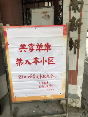 为了进一步规范好弄内停车,我们同时在弄堂口制作宣传版面“共享单位禁入本小区”友情提示牌以及时劝阻,应对新形势下的新问题,与弄管会一起完善弄内的非机动车停车制度,同时弄管会值班同志又增加了共享单车劝阻进弄这一工作内容,通过宣传教育,努力确保弄堂管理有序、居民生活安定。