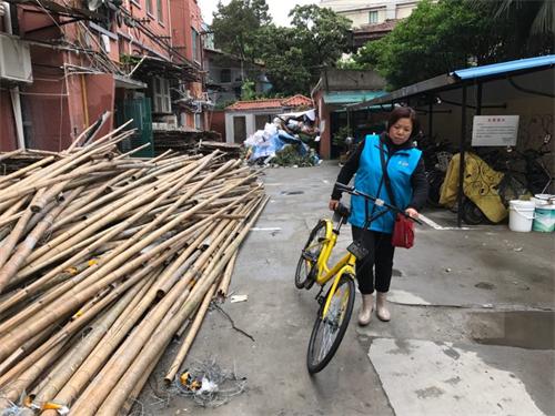 武康居委为了规范弄堂机动车和非机动车的停放轶序,组织单位内的员工与社区工作者一起把弄内共享单车搬出小区,边整治边宣传,受到弄内居民的称赞。特别是在中南新村停车微信群中互动较多,有的说:“非常感谢!”、有的说:“很多居民都赞同居委的行动”、有的说:“感谢居委干部冒雨采取行动”、有的说:“此行动做的好”,也有的说:“贵在坚持,不要象阵风……”。居民的肯定是我们工作的动力,居民的质疑更是我们工作的目标。