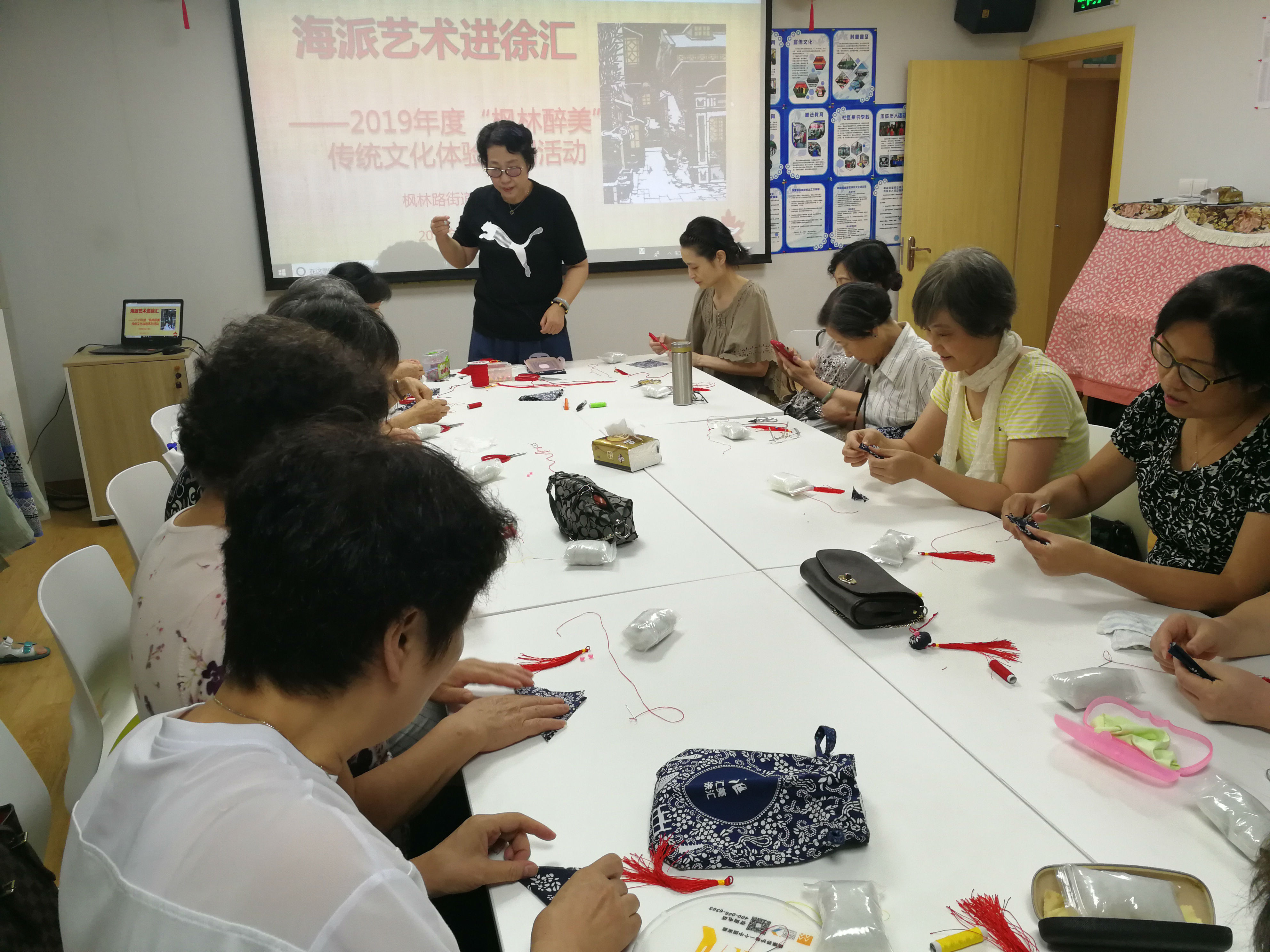 8月22日(周四)下午2:00分,由上海民间文艺家协会、上海工艺美术职业学院、林曦明现代剪纸艺术馆、上海守白文化艺术有限公司四方联手打造 “海派艺术进徐汇-2019年度“枫林荟”企业公益文化服务沙龙”之手鞠编织,在徐汇苑居委会展开。