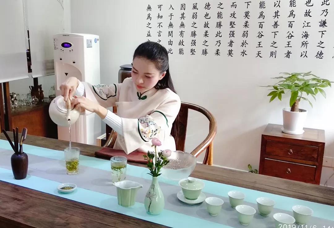 冲泡的基本程序步骤:倒水温杯、初识仙姿、静心备具、悉心置茶、温润茶芽、悬壶高冲、甘露敬宾、辨香识韵九、再赏甘霖十、再悟茶语。
