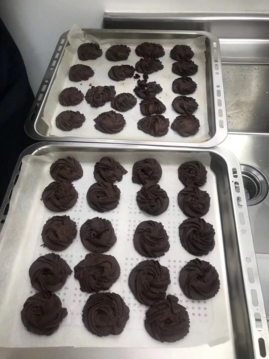 第一节课徐老师教授的是黄油曲奇饼干的制作,老师先为每位学员分发材料和工具,学员们以2人为一组,分工协作,按照制作的配方和步骤一步步完成。在制作过程中,大家相互交流,有不明白的立即向老师请教。不多时,一块块曲奇饼干就做好了,香味蔓延了整个活动室。