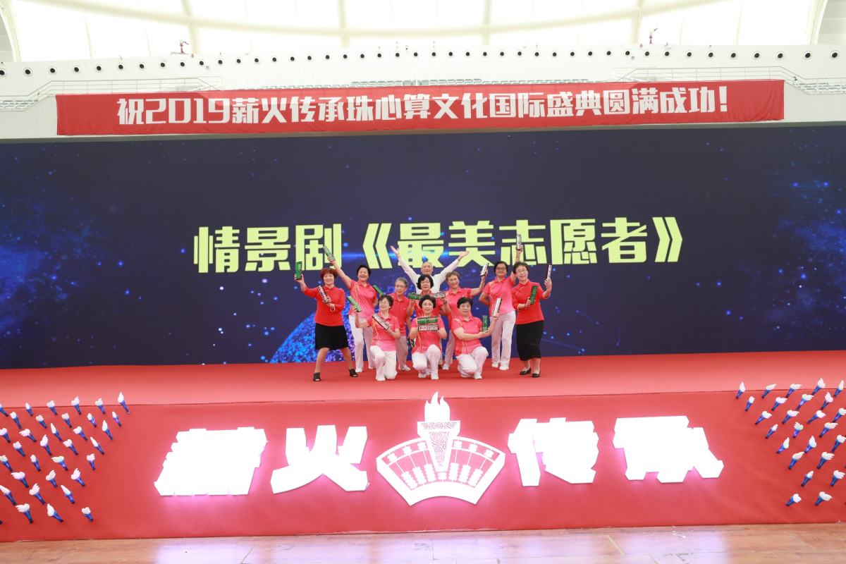 华泾镇老年健脑珠心算学习团队也应邀参加了此次盛典。盛典上,来自学习团队的成员代表们表演了情景剧《最美志愿者》,讲述了十年间团队在开发、建设、推广、完善老年珠心算课程的酸甜苦辣与感人事迹。舞台上,成员代表们时而深情讲述,时而跳起韵律十足的算盘舞,时而与台下观众玩起珠算游戏,活泼生动的演出赢得了观众们的阵阵喝彩。