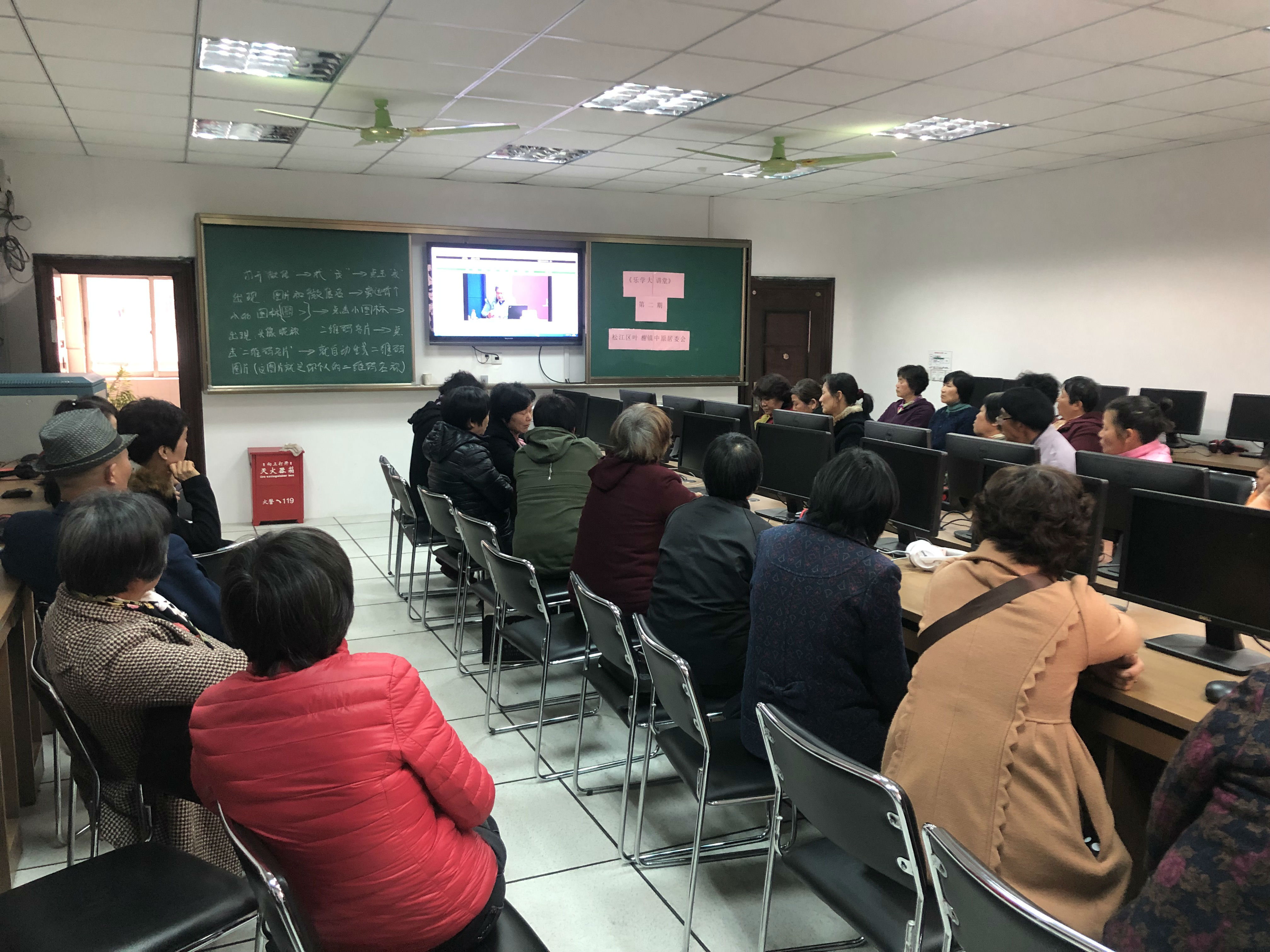 2019年4月11日14:00时,《乐学大讲堂》第二场报告《老年人的健康生活方式》在上海老年大学钦州书院开讲啦。叶榭镇老年学校组织全镇17个收视点,采用集中和分散收视相结合的方式收看了本场报告。