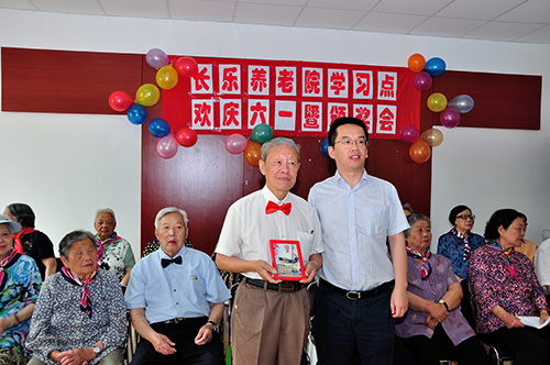 镇民政科陈科长,大场成中朱琦主任,大场社区学校负责领导顾勤燕老师三位领导在长乐养老院刘志刚院长的陪同下,出席了超龄儿童庆“六一”的《长乐养老院学习点 欢庆六一暨颁奖会》,再一次地体现政府和各级领导,对老人的关爱和对老年事业的支持。在会上领导的发言,更加鼓舞我们了努力做好文化养老的信心和决心。同时也给我们坚持不懈,持之以恒办好学习点,提供了强大的精神支柱。