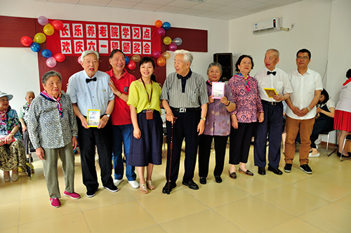 镇民政科陈科长,是指点我们联谊会走进“长乐养老院”的“伯乐”,欢庆会上陈科长的发言,肯定了我们联谊会在长乐养老院的优良表现。大场成中朱琦主任是率领我们团队走进养老院办学习点的第一人,她代表学校须校长的发言,十分她坦率地表达了学校全力以赴,办好长乐学习点的态度和热情,毫无保留地要把学习点办成老人爱学习的场所,老人文化养老的典范,让老人在学习点开心,让老人的家属放心,让我们学校联谊会的“小老人”在养老院的平台上,展示献给老人们的一片爱心。