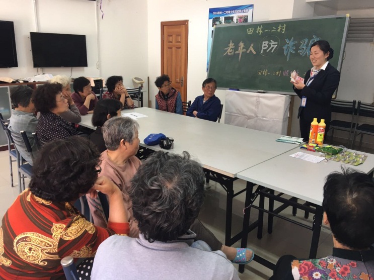 2017年4月19日下午2点在居委活动室举办了老年人防诈骗宣传活动。近年来诈骗案件呈高发、多发事态,诈骗手段不断推陈出新,电话诈骗、保健品诈骗、金融理财诈骗等形式五花八门,尤其是老年人更容易成为受害者,本次宣传活动邀请了辖区内20多位居民参与,宣传老师提醒老人面对形形色色的骗术,一定要保持清醒的头脑,不贪图小利,不轻信他人谎言,牢记世上“没有免费的午餐”。要多关注新闻媒体、社区内黑板报、宣传栏、标语等宣传,了解当前多发的各类诈骗手法。现场,很多老年人纷纷现身说法,以自身经历提醒大家碰到蹊跷事要“多个心眼”,避免遭受损失。