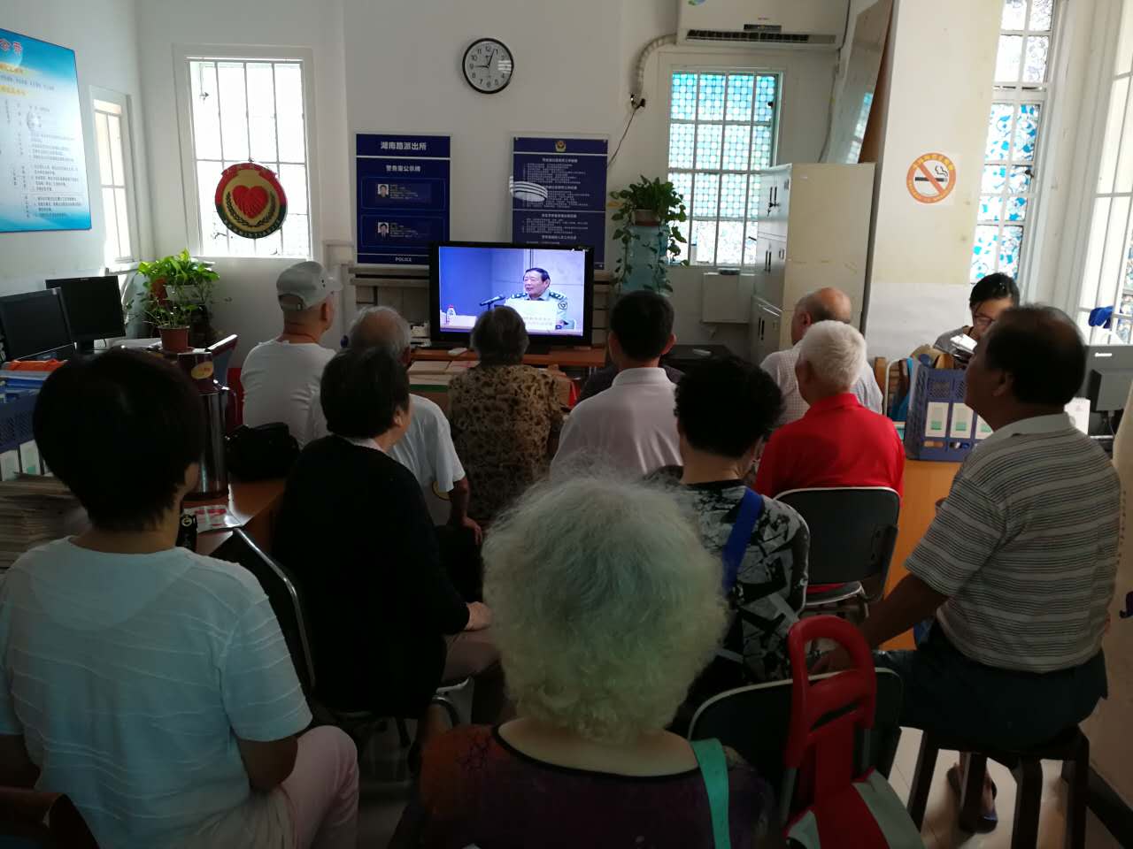 为纪念中国人民解放军建军九十周年,广泛宣传我党我军的光辉历史,教育广大党员不忘初心,继续前进,推动全市“两学一做”学习教育常态化制度化的贯彻实施,8月17日上午,在华康居委面积不大的办公室里,由居委书记陈忆娜牵头,组织辖区内部分党员收看由罗援将军作题为 “军旗为什么这样红——强军路上的人民军队”的报告。