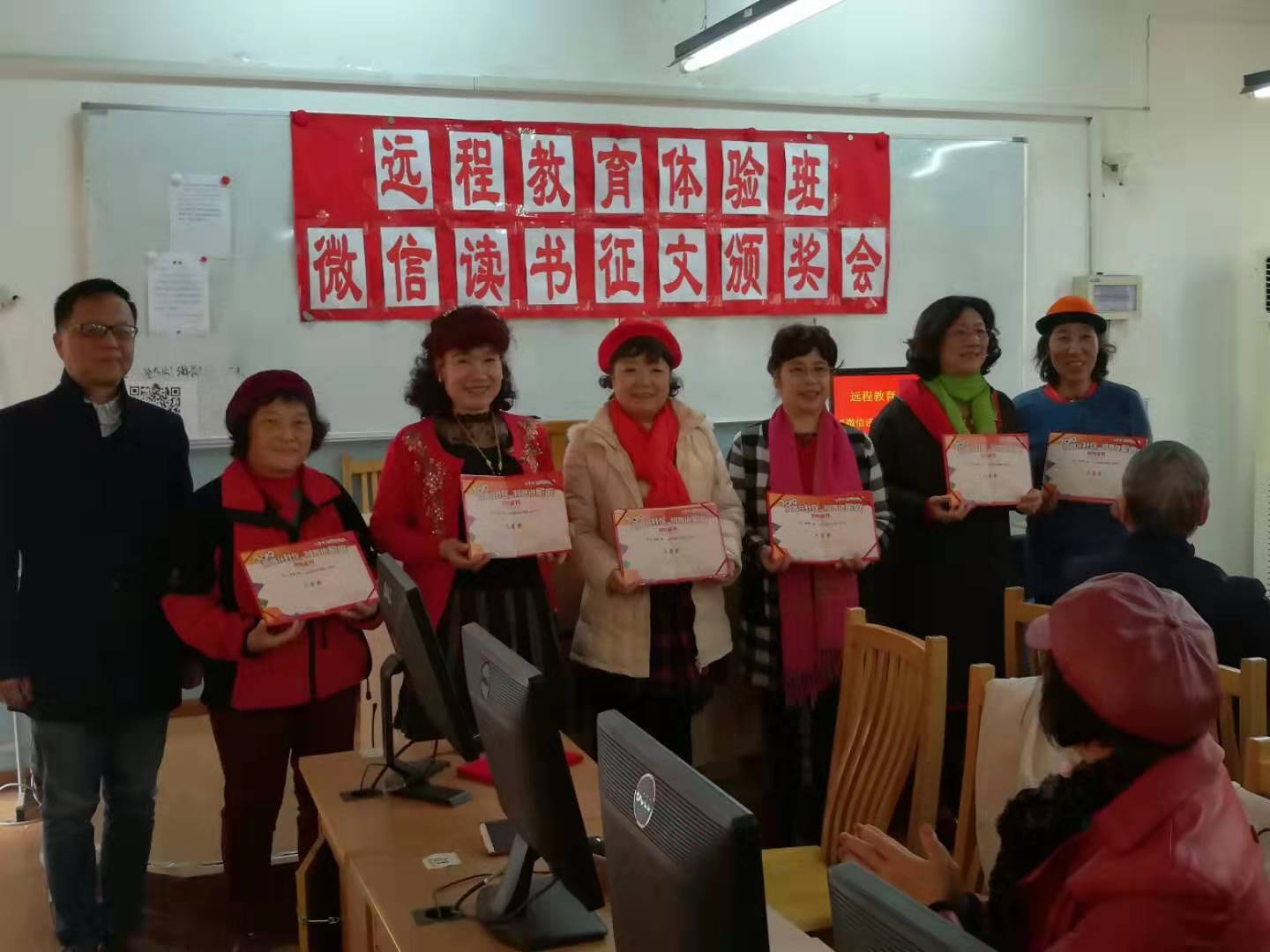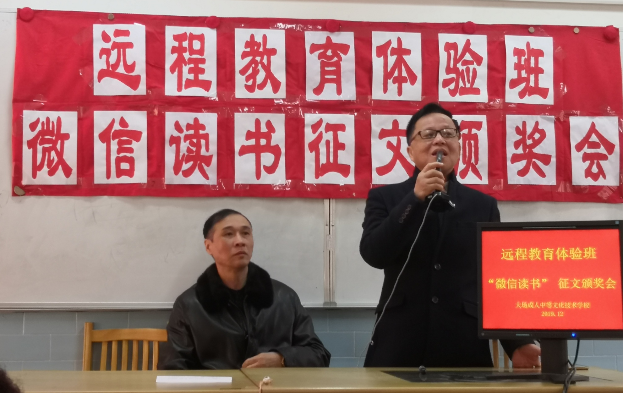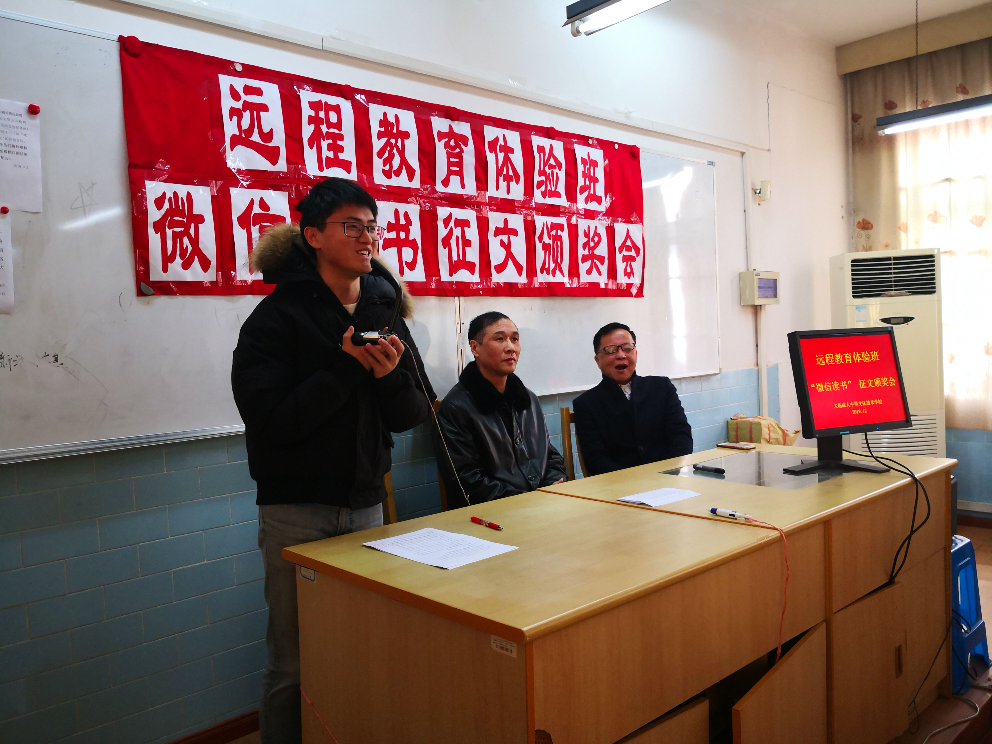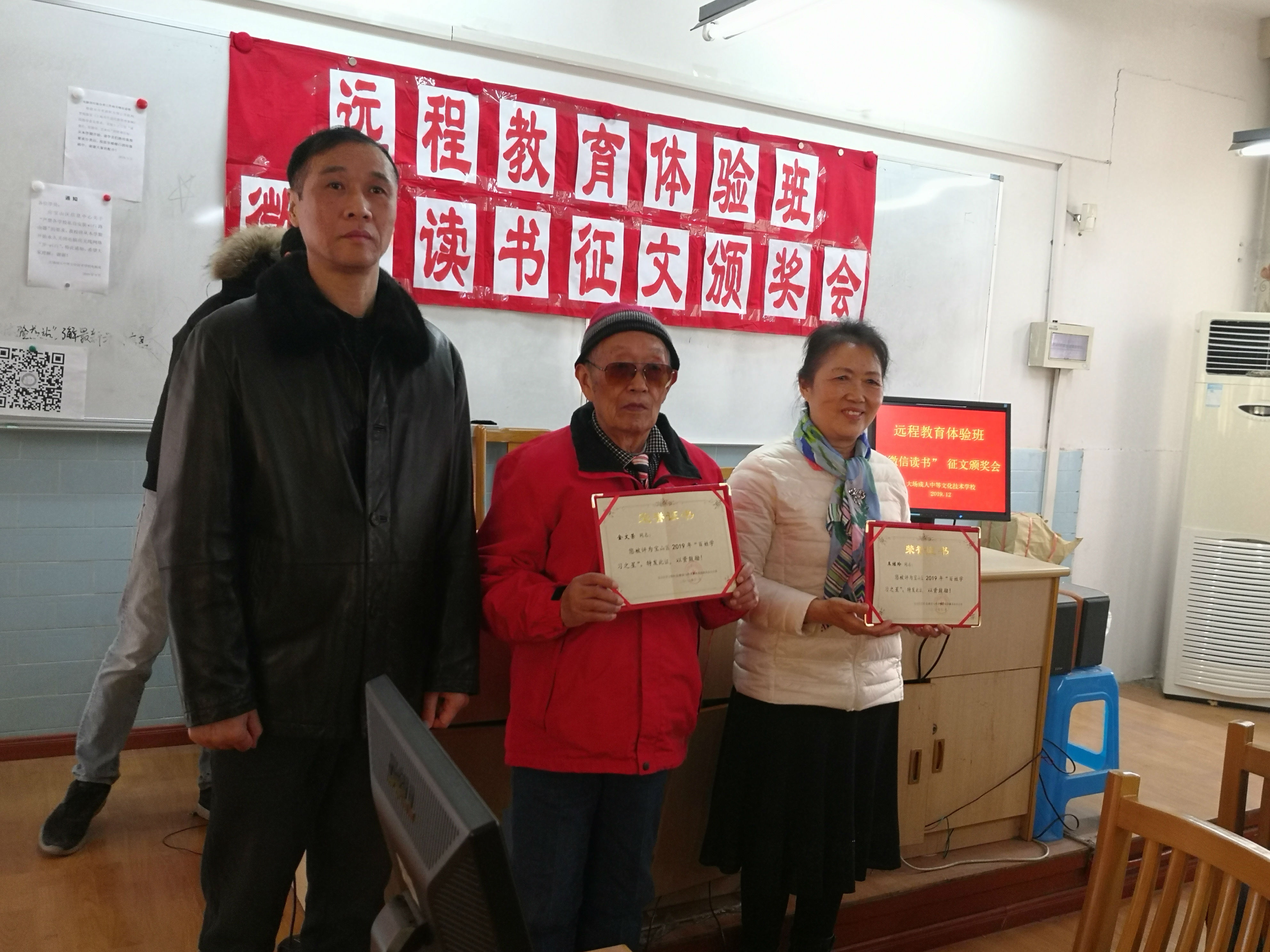 微信读书征文颁奖会,概括了2019年学校在老年教育上的进步,开拓和创新;展现了远程教育持续发展的新层面,新方向;反映了终身学习给学员带来的获得感,幸福感,安全感;明确了体验班“而今迈步从头越”的方向。