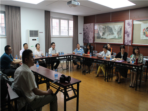 代表团一行先参观了华泾五村居委会议室、活动室,观摩老年人学习活动,查阅了学习点管理制度和档案资料。在交流会上,华泾五村居民区党支部高书记介绍了学习点的建设过程。多年来在各级领导的大力支持下,学习点加强硬件建设,完善各项制度,学习点学员不断增加,活动内容逐步丰富,获得全国示范收视点、上海市示范学习点、上海老年人学习团队等荣誉。收视点辅导员韦昌铭谈了他参与学习活动的感想,他感谢政府和居委为老年人创造的条件,每年提供教材,针对居委学员年龄大、受教育程度不高的情况,引入手指操、七巧板、健康知识等内容,更贴近老年人生活。会上还播放了徐汇区远程老年教育巡礼片和华泾五村收视点纪录片。与会领导就学习点建设推进、远程资源建设、规章制度完善等方面进行深入交流。