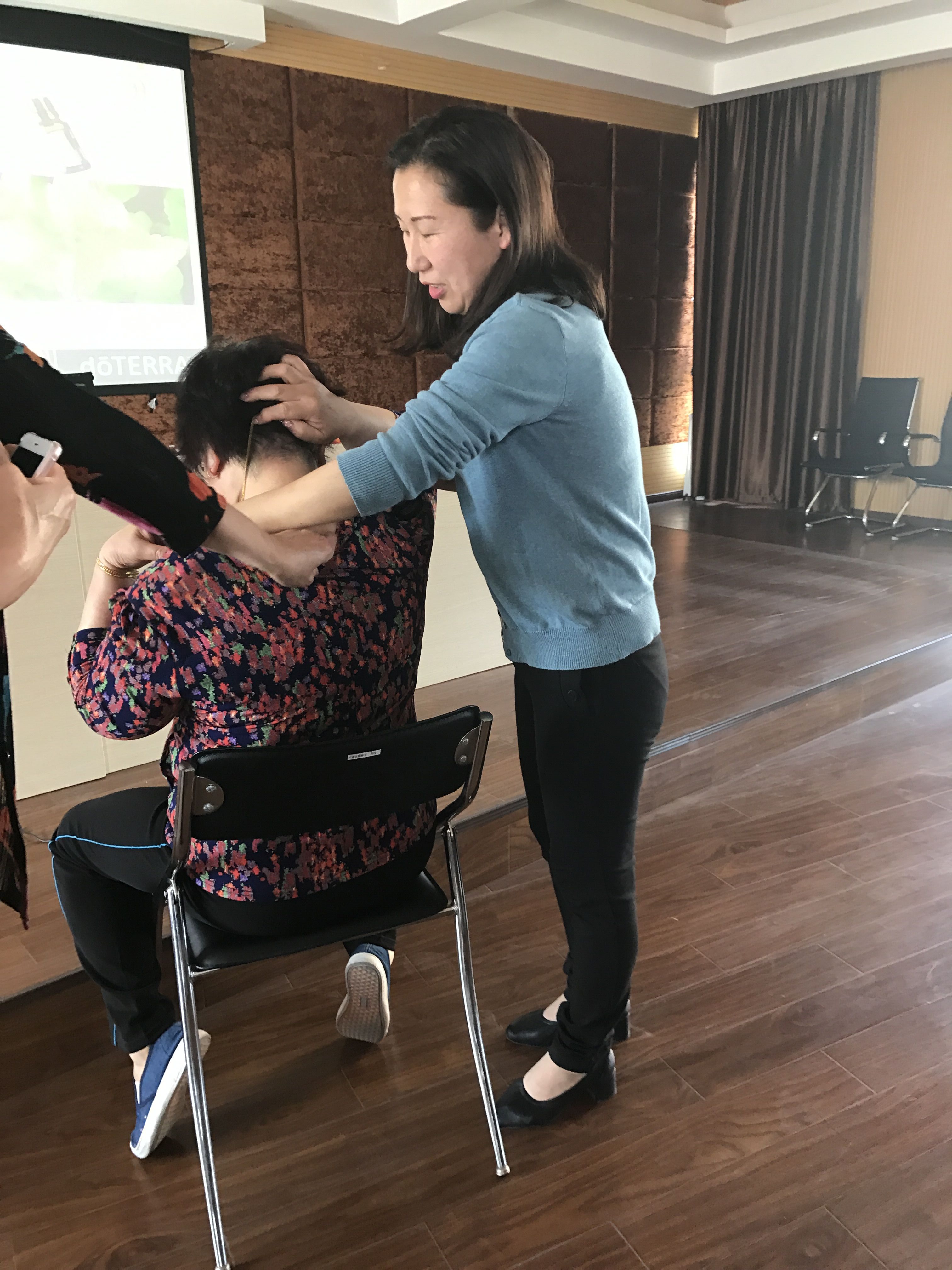 最后,老师调制的独家精油隆重登场,大家迫不及待的涂抹在手部、颈部、肩部,慢慢感受着芳香分子弥漫开来,缭绕在自己周围,心情也愉悦了起来。