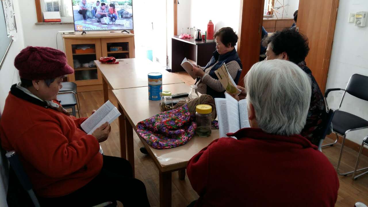 春意融融的3月30日下午,田林五六七居委的文教干部来到了七村老年活动室,发现老年远程教育收视的五位学员在边对照书本边在收看上海教育电视台播出的《居家养老那些事》。