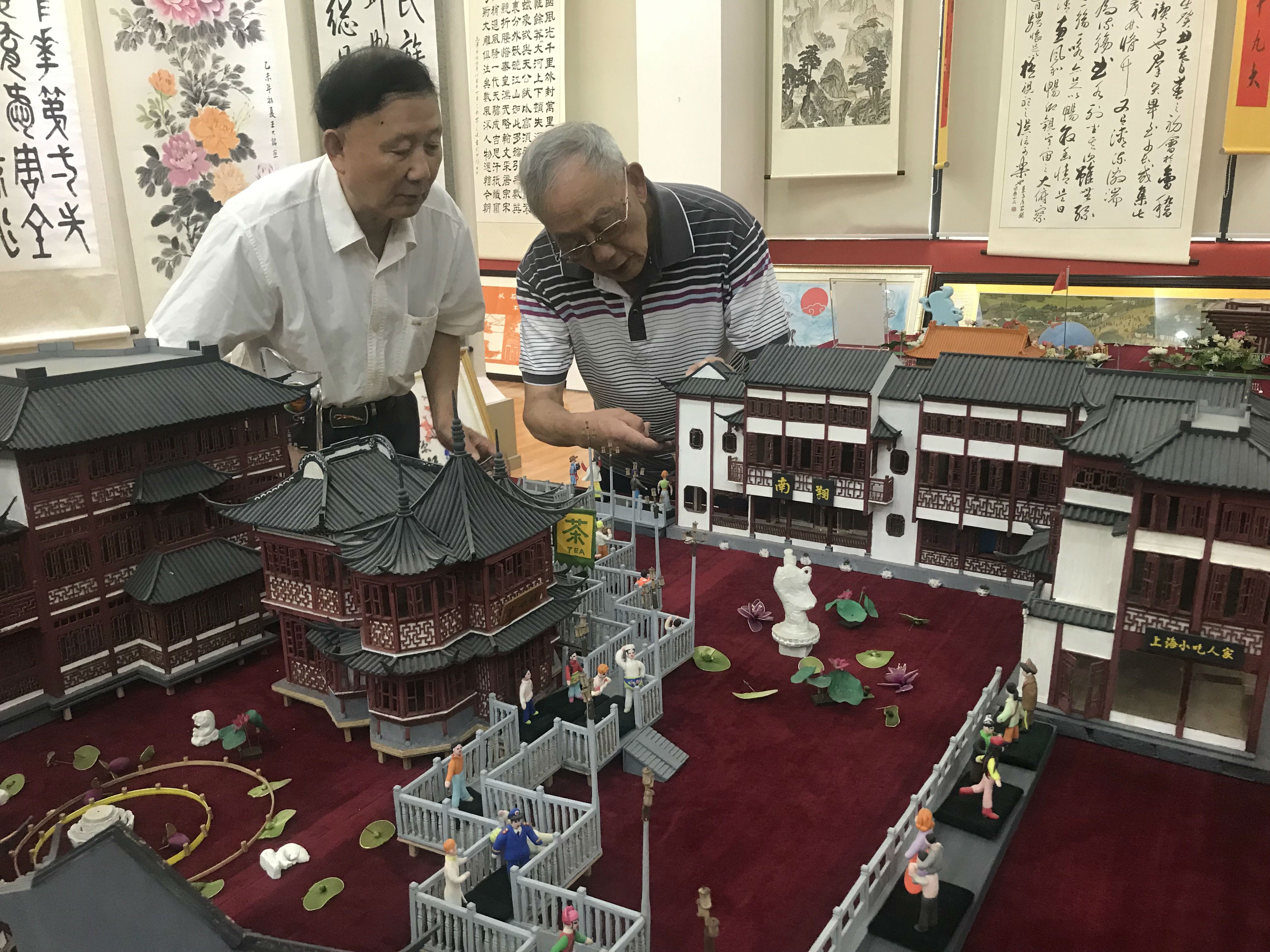 他的搭档彭逸民老先生今年80岁,是从松江酿造厂退休的机修工。他心灵手巧,退休后开始迷上微雕,利用废弃竹子、木头、电线、纸板等,先后“造”出了北京天安门、青浦的陈云故居、泗泾的史量才故居等作品,得到了广泛称赞,也获得了众多荣誉。
