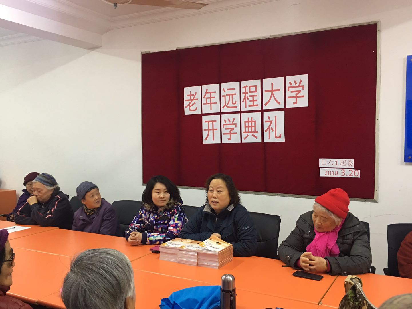 开学典礼上班主任顾里兰向学员们介绍了这学期要收看和学习的内容“健康养老那些事”,这本书包含了合理膳食,还有中医养生、心理健康、理解生命等内容,希望学员们结合电视上的内容回去再看看书,对学员们身体都有帮助的。另外告知学员通过大调研、大走访,居委为居民们解决了一些事,例如:居民家下水道漏水漏到下面居民家,还有反应环境卫生不好,楼道堆物等事。如果学员们还有什么诉求,在合理合情的范围内,街道、居委会会去解决的,今年大调研、大走访是我们重中之重的工作,我们要把大调研工作一直走下去多为民办实事办好事。