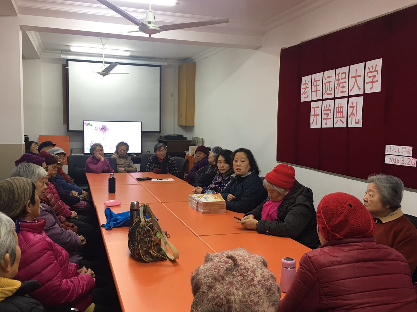 3月20日秋风细雨,是我们日六一居委老年远程大学开学的日子,上午学员们就冒着细雨早早来到电教室等待开学。