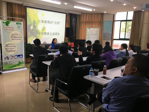 5月4日上午,在松江区佘山镇社区学校江秋新苑社区会议室内开展了以“环保酵素”为主题的纪念五四青年节活动。此次活动我们邀请了社区青年、翠鑫苑、小区街面餐饮业主等共计40余人参与。由区益行企业家促进会周教授工作室的张老师给我们带来了一堂关于“环保酵素”的公益课。