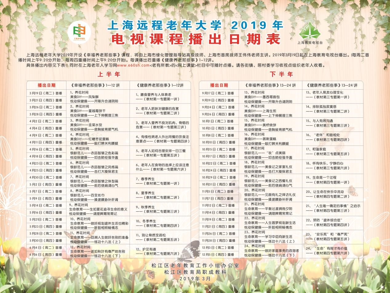 3月19日上午9点20分,2019年《幸福养老那些事》通过上海教育电视台再次向全市老年人直播。为此,松江区老年教育工作小组办公室特通过以下举措落实。