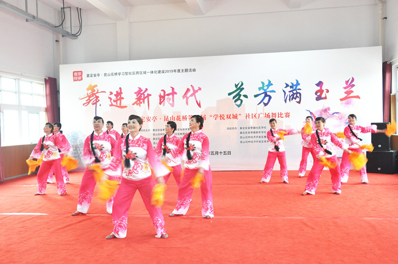 5月15日下午,嘉定安亭·昆山花桥第三届“学悦双城”——“舞进新时代?芬芳满玉兰”社区广场舞活动在嘉定区安亭镇成人中等文化学校顺利举行,本次活动由嘉定区安亭镇成人中等文化学校和昆山花桥经济开发区社区教育中心联合主办,安亭镇玉兰第一社区、莱英社区和花桥经济开发区时代社区联合承办,安亭镇社区学校、安亭镇老年学校、花桥经济开发区曹安街道办事处、花桥经济开发区老年教育中心联合协办,共有来自安亭和花桥的18个舞蹈团队,近250名市民参加了本次活动。