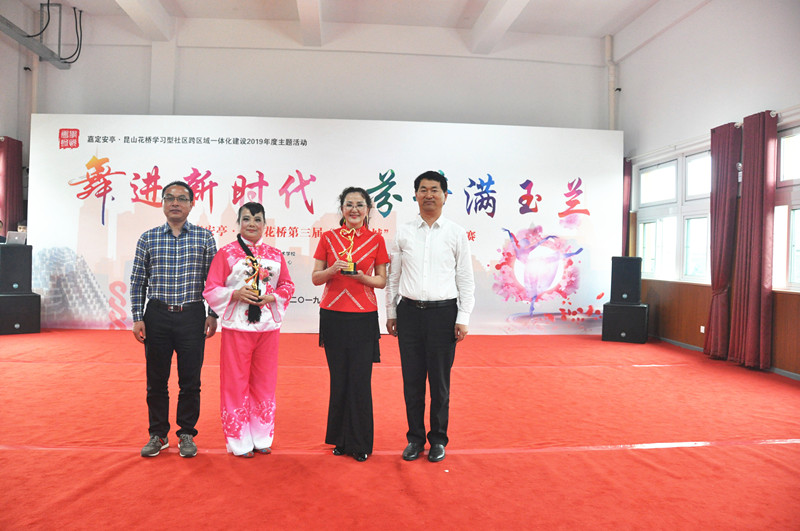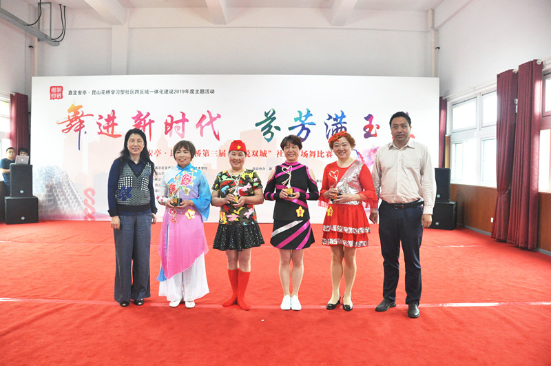 各参赛队员们穿着精心准备的统一服装,踏着快乐的节拍依次翩然起舞。队员们舞出了健康的活力,舞出了自信的魅力。他们饱满的精神面貌和精彩的舞蹈动作吸引着现场每一个人,热烈的掌声充斥着整个大赛现场也把此次活动推动到了一个沸点。根据每支队伍的进退场、服装仪态、套路编排、完成质量、现场表现等几方面,通过来自两地的评委打分。来自安亭玉兰第一社区的“飞歌醉情怀”和花桥绿地社区的“沂蒙松”荣获本次活动的金奖。