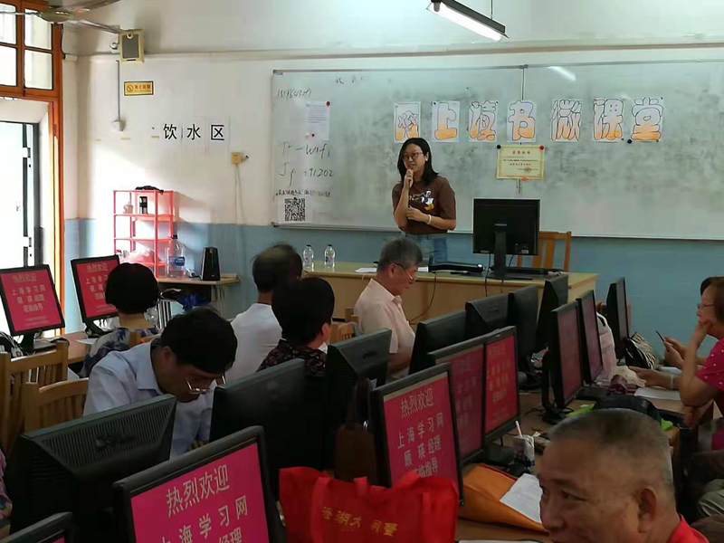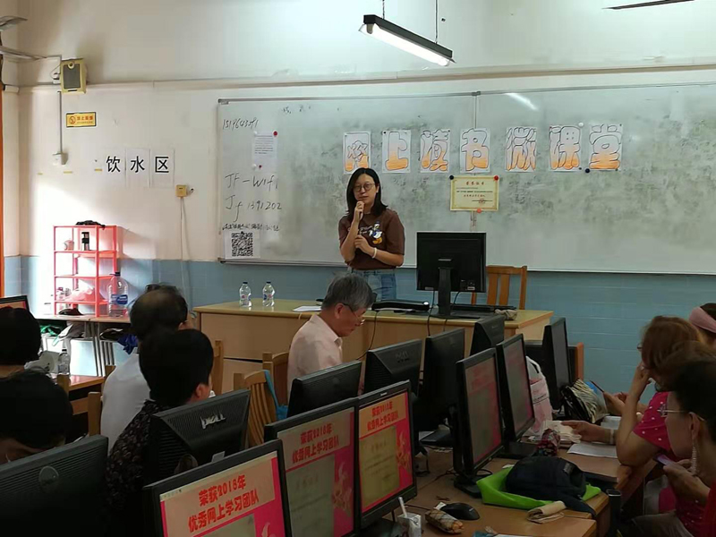 我们团队在上海学习网领导黄晖总监的支持和鼓励下,举办了“网上读书微课堂”。课堂的黑板上特地张贴了2018年上海市“优秀网上学习团队”的奖状,激励大家的热情。网站还特地派顾 瑛经理,直接为我们“网上读书微课堂”授课指导,上海学习网第一次与我们团队面对面,零距离的接触,受到了我们志愿者老师们的热烈欢迎,特别是在推广上海社区网上读书活动的细节上,针对老年人的特点,反复,耐心讲解,给大家留下了深刻的印象,熟练的操作,简明的解说,介绍手机功能多方位的学习手段,使大家很快进入学习网的学员角色,学习到了知识,志愿者老师印忠义说“老师的指导和帮助。阅读内容很丰富,用手机看视频,可以增加许多知识,也很方便,”
