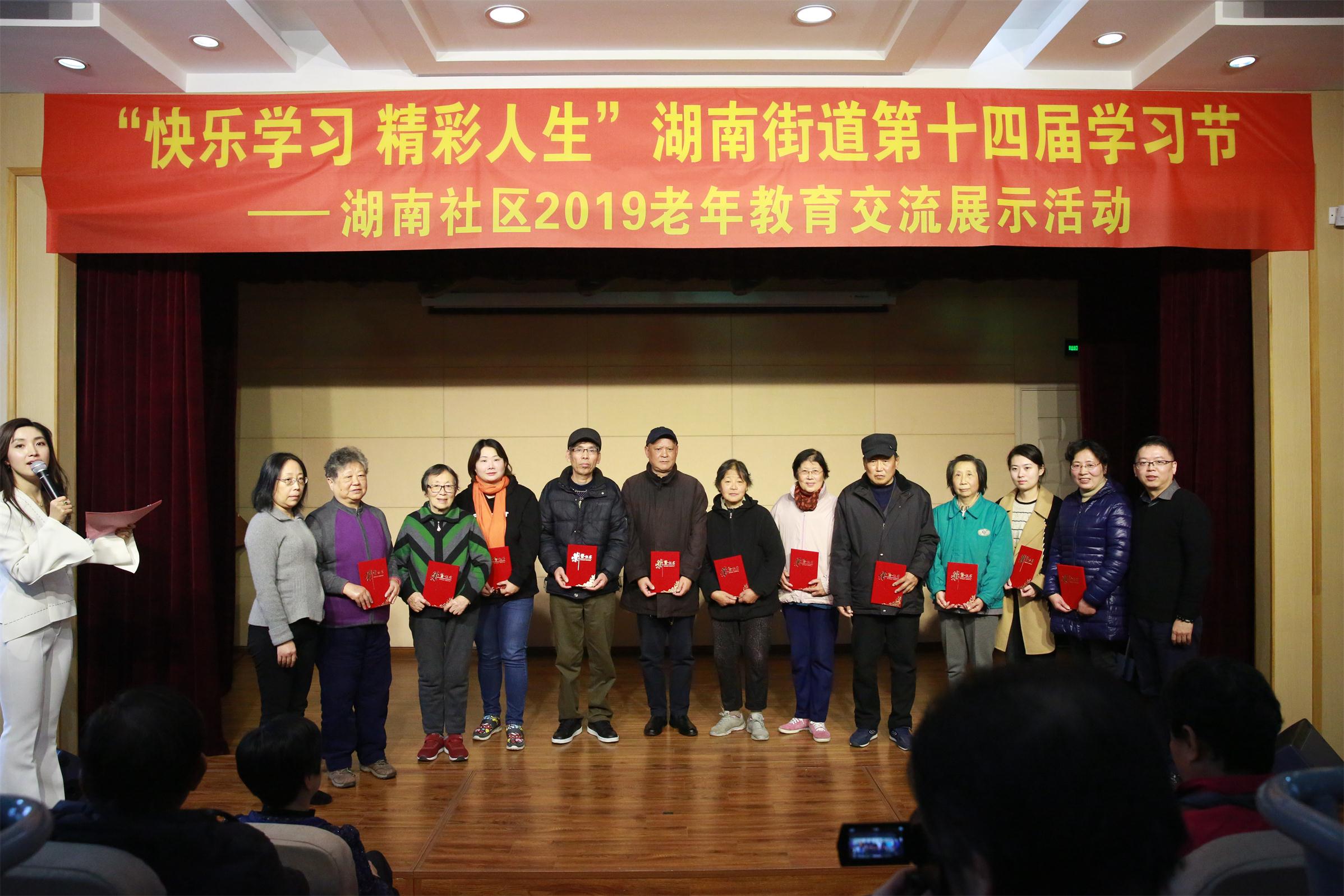 2019年12月20日下午,在湖南街道社区学校五楼小剧场隆重举行了湖南社区2019年老年教育交流展示活动。整个会场洋溢着浓浓的喜庆的气氛,座无虚席。